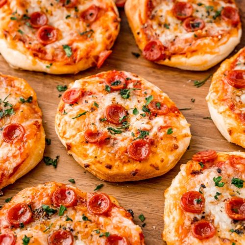 Shredded mozzarella cheese is the classic, of course! About ½ cup per pizza. Feel free to mix in some provolone or a sprinkle of Parmesan for extra depth of flavor.