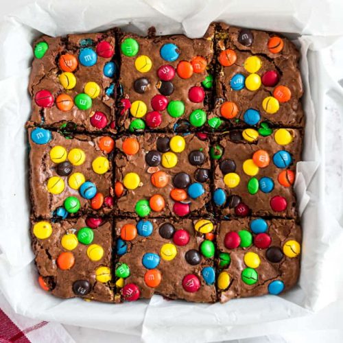 Thick and fudgy chocolate M&M's Brownies packed with candies and chocolate. Use your favorite version of M&M's for festive flavor twist.