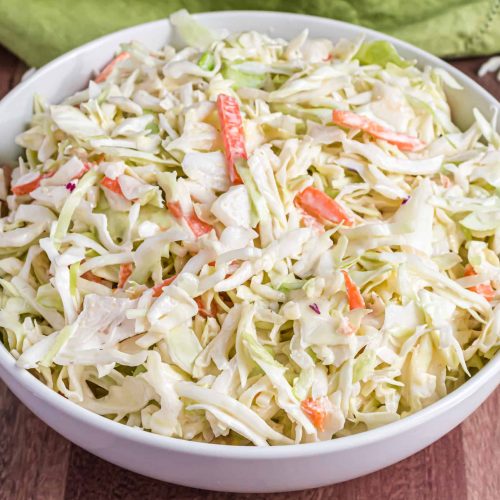 - Add in shredded cole slaw mix and fold over with spatula until completely coated. Cover and refrigerate 2 hours, or overnight.