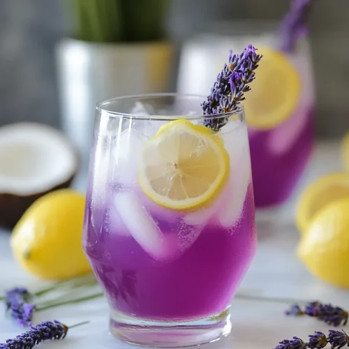 A refreshing and unique twist on classic lemonade, this Coconut Lavender Lemonade combines the tropical creaminess of coconut with the delicate floral notes of lavender, balanced by tart lemon. Perfect for a warm day.