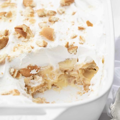 - Repeat with another layer of cookies, pudding, and bananas.