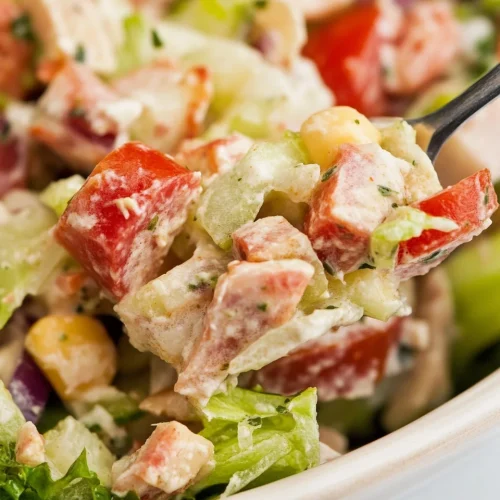 Room Temperature: This salad is definitely best enjoyed fresh. I wouldn’t leave it out at room temperature for more than an hour, especially with the deli meats and cheese. For safety and taste, it’s best to refrigerate promptly.