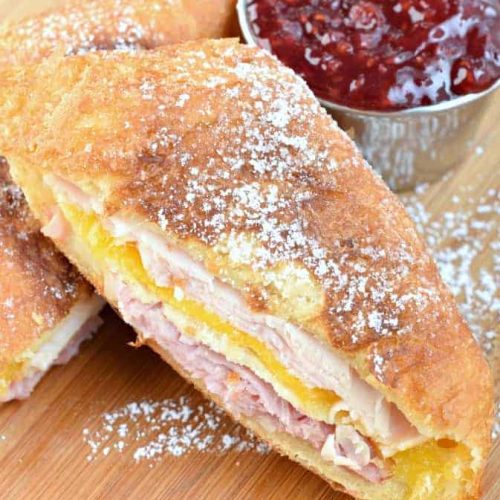 This is the moment of truth! Using a sharp knife, carefully slice the Monte Cristo sandwich in half, either diagonally or straight down the middle. You’ll see that beautiful cross-section of melted cheese, ham, and custardy bread. Serve it immediately while it’s hot and the cheese is still wonderfully melty. The contrast between the warm, savory sandwich and the sweet glaze is what makes this dish so incredibly special. It’s a truly decadent treat!