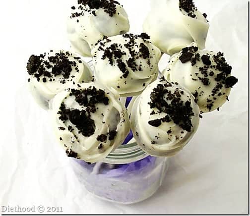 - Add the cookie crumbs. Sprinkle the cheesecake cake pop with some of the reserved cookie crumbs.