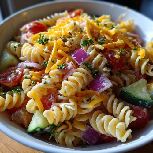 What are the reasons why this recipe has earned a permanent spot in my recipe binder?flavor is just out of this world. That homemade ranch dressing is so vibrant and fresh, with just the right amount of tanginess from the buttermilk and creaminess from the mayo and sour cream. It coats every single piece of pasta and veggie so beautifully, making each bite an explosion of deliciousness. And then there’s the simplicity! I know, I know, “homemade dressing” might sound intimidating, but trust me, it takes less than five minutes. You just whisk everything together! The rest is just boiling pasta and chopping veggies. It’s honestly one of those dishes that feels fancy but is secretly so easy to make, which is my favorite kind of recipe. Plus, it’s incredibly cost-efficient. Pasta is always a budget-friendly staple, and the other ingredients are pretty standard pantry and fridge items. You can also stretch it pretty far, making it perfect for feeding a crowd without breaking the bank. And let’s talk about versatility! This ranch Pasta Salad is a blank canvas. I’ll give you some of my favorite additions, but the beauty is you can swap things out based on what you have on hand or what you’re craving. It’s also incredibly forgiving. It’s perfect for those scorching hot days when you don’t want to turn on the oven, but it’s also great for meal prep, picnics, or as a comforting side dish. I’ve found that it’s even better the next day, once all those flavors have had a chance to meld together, making it a lifesaver for busy weeknights or last-minute gatherings. It’s definitely a step up from your average pasta salad, and it’s the kind of dish that people will ask for the recipe for, guaranteed!