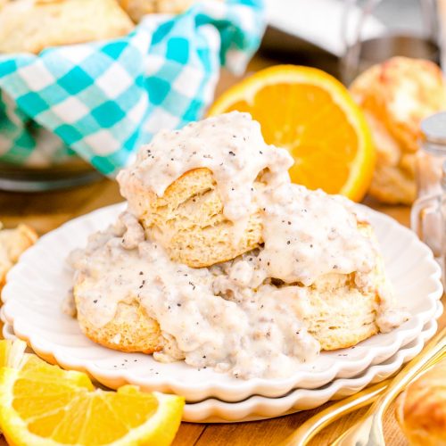 One of my family’s favorite traditions is having sausage gravy and biscuits on Saturday mornings after a busy week. It’s our little way of saying, “We made it!”