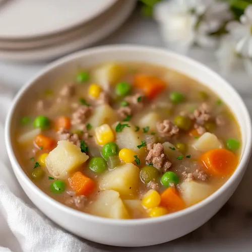 So, what exactly is Shepherd’s Pie Soup? Think of it as all the delicious components of that beloved British comfort food, reimagined as a hearty, soul-warming soup. Instead of a meat and vegetable filling topped with mashed potatoes, we’re blending those flavors into a rich, savory broth. We’ve got tender ground meat (or lentils for a vegetarian twist!), plenty of garden vegetables like carrots, peas, and celery, all simmered in a deeply flavorful beef or vegetable broth. Then, the magic happens – a swirl of creamy, dreamy mashed potato topping that gets all golden and slightly crispy around the edges when it’s served. It’s not just a deconstructed shepherd’s pie; it’s a cohesive, delicious soup experience that captures the essence of the original while offering a wonderfully comforting, easy-to-eat format. It’s essentially the ultimate comfort food, made spoonable!