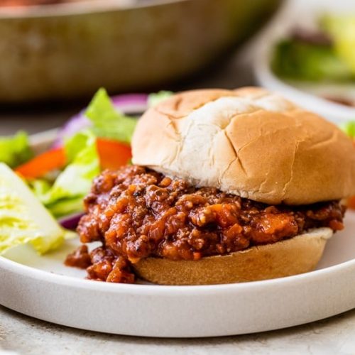 This recipe is designed as a saucy filling for buns. It wouldn’t really translate well into a muffin form as the texture and moisture content are quite different from a typical muffin batter. However, you could certainly serve the Sloppy Joe filling as a topping for savory muffins if you’d like to experiment!