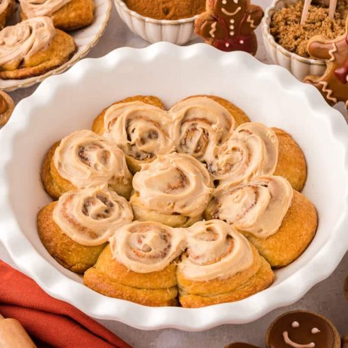 These cinnamon rolls are soft, fluffy, and topped with a luscious gingerbread cream cheese frosting, perfect for a festive breakfast or dessert.