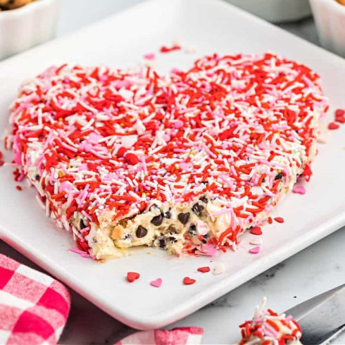 - Wrap mixture in a large piece of plastic wrap and refrigerate for 1 to 2 hours. After chilling, shape the mixture into a ball or a heart on a serving tray and cover with sprinkles.