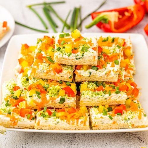 After the glaze has had a moment to do its magic, slice your veggie pizza into squares or rectangles. Serve it warm. The smell alone will have everyone gathering in the kitchen, I promise!